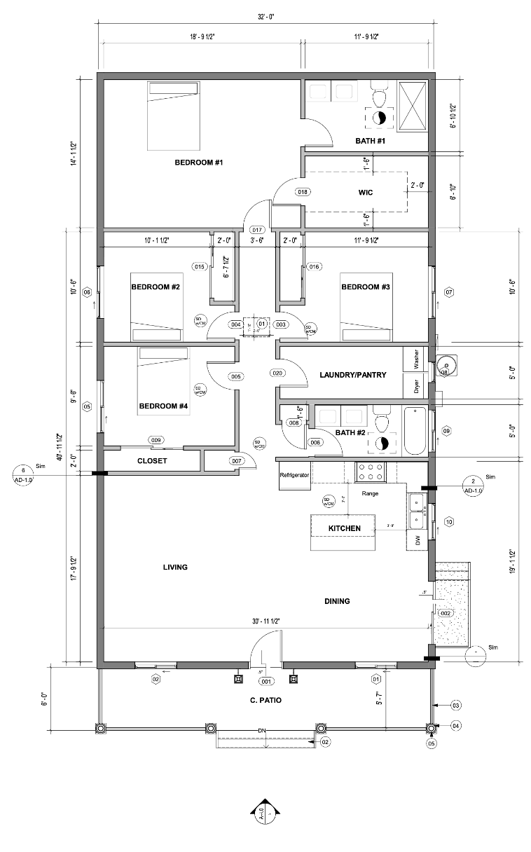 Este es nuestro plano de planta para una casa de cuatro habitaciones y dos baños.